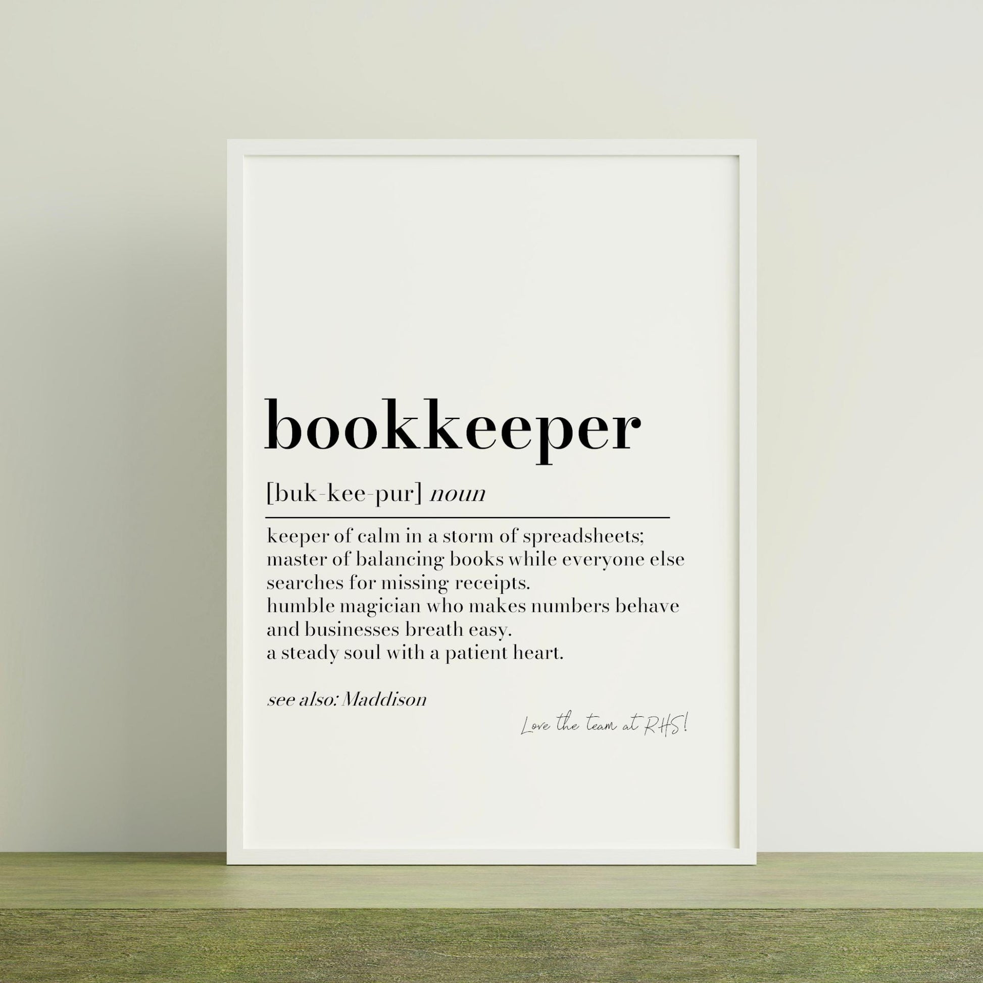 Bookkeeper Definition Print: Personalised Office Wall Art, Gift for Bookkeeper, Christmas Gift, Funny Gift, Finance Team Office Decor