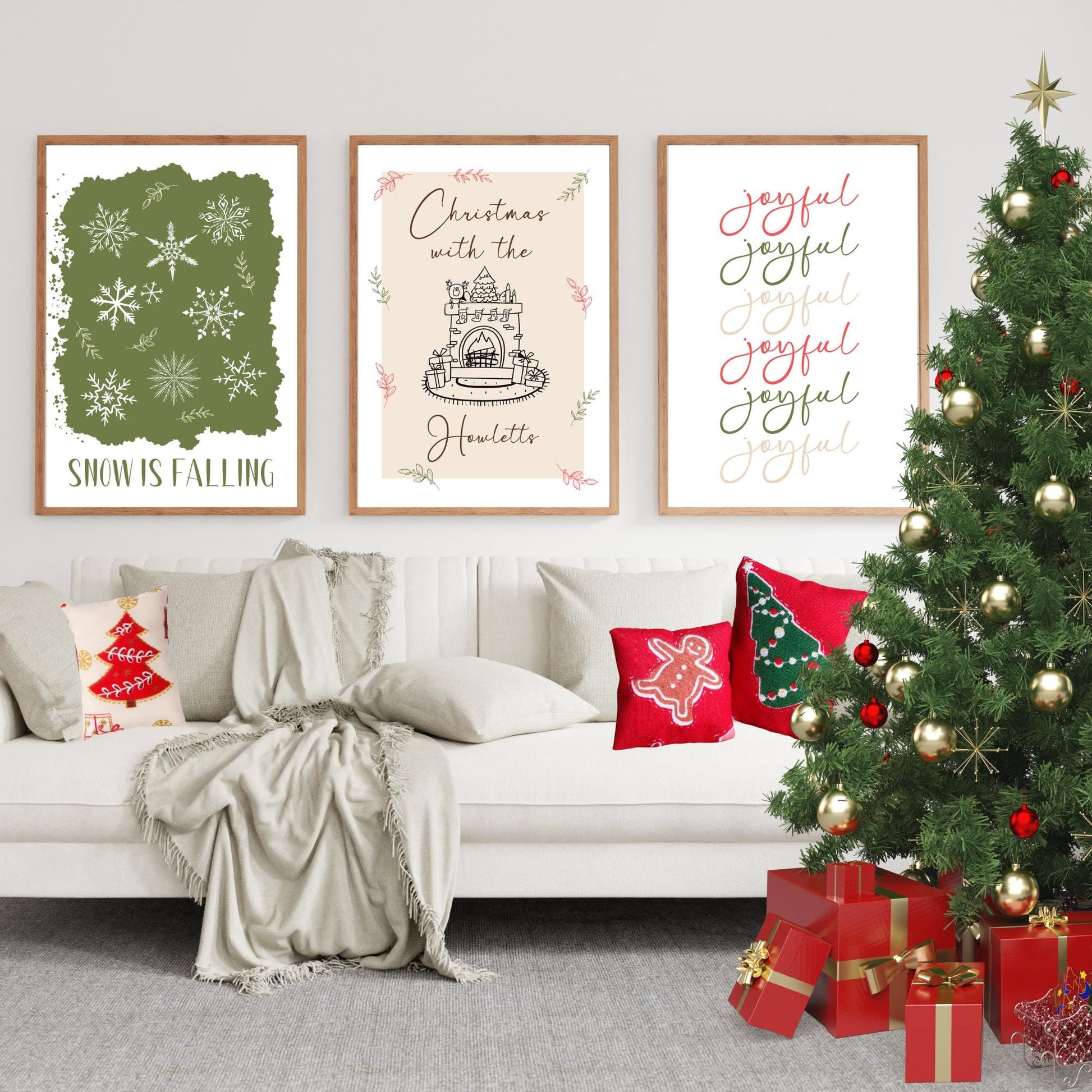 Personalised Christmas Wall Art Set, Festive Printables, Joyful Christmas Decor, Hello Christmas, Snow Is Falling, Cosy Holiday Print Set