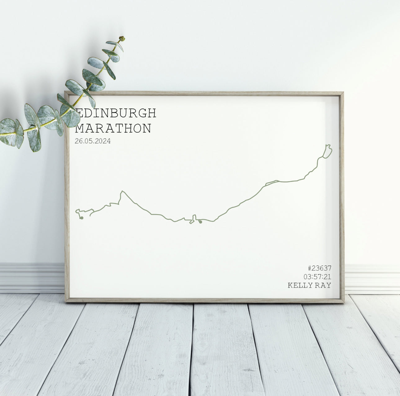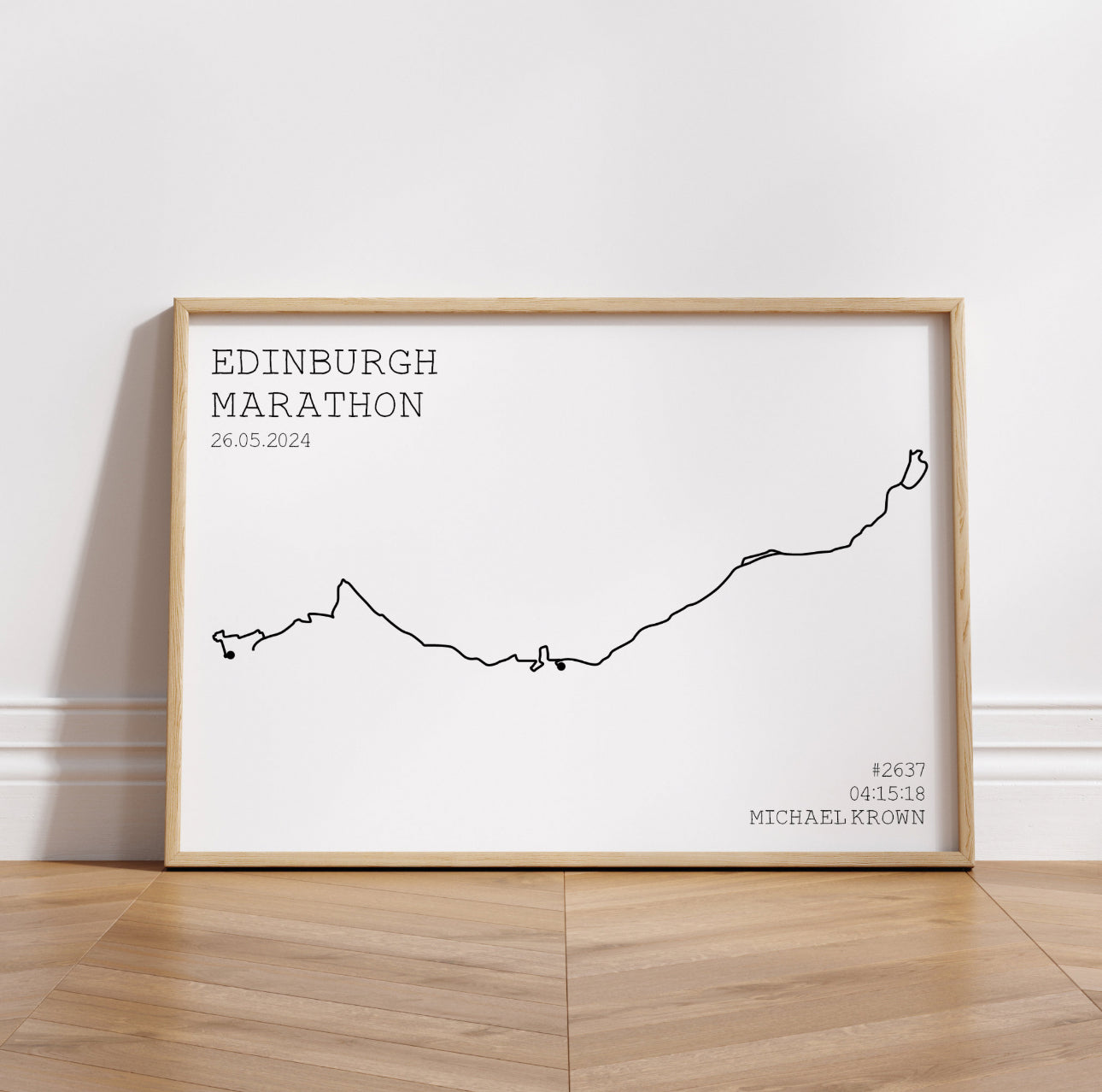 Personalised Edinburgh Marathon Map Print, Marathon Route Print, Edinburgh Marathon Finisher Print, Marathon Gift, Running Gift, Edinburgh Marathon Festival