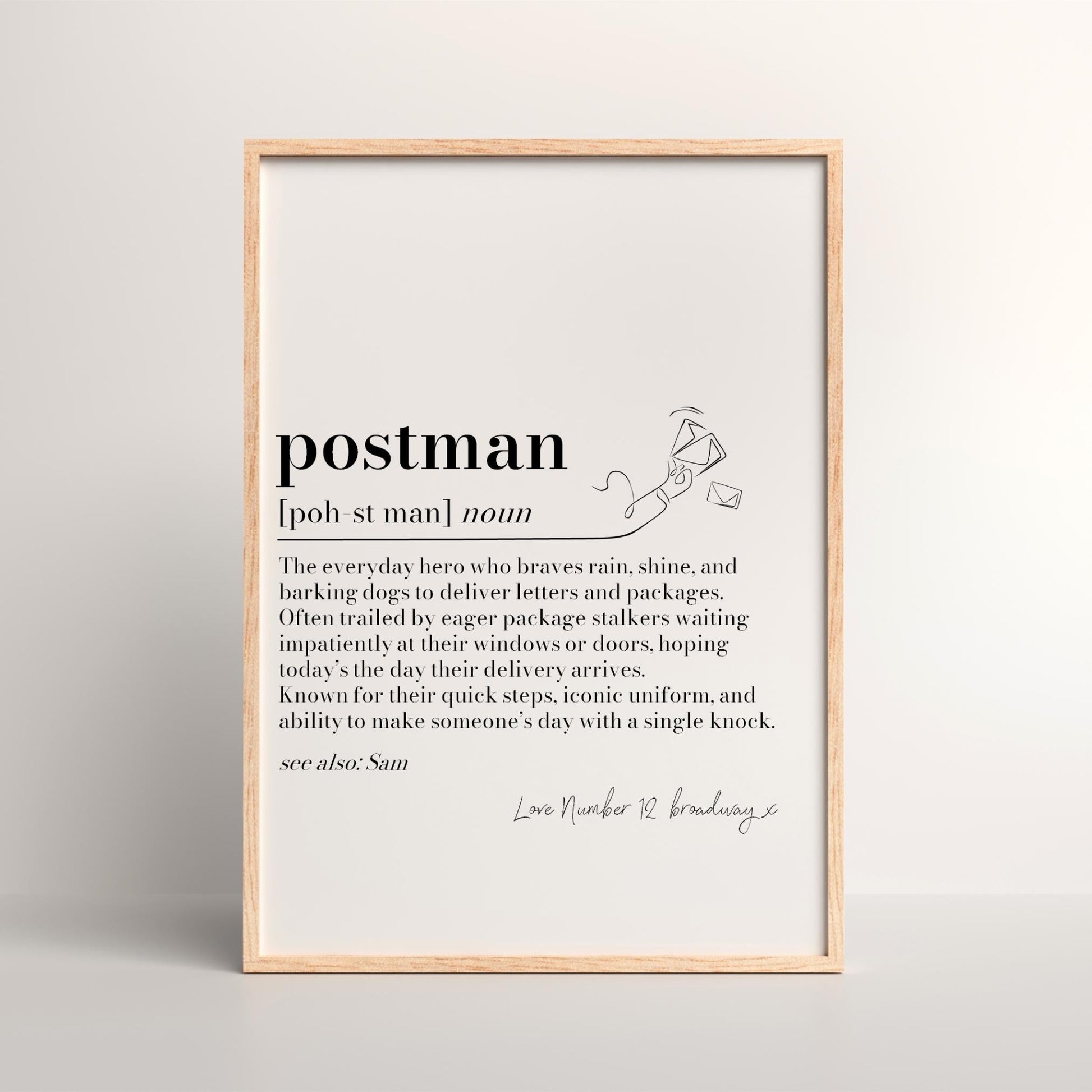 Personalised Postie Definition Print, Postman gift, Postwoman Gift, Quote Wall Art, Gift for Postie, Thank You Gift, Postman Christmas Gift, Postal Delivery Parcel Gifts Keepsake Meaningful Poem Word Art Print