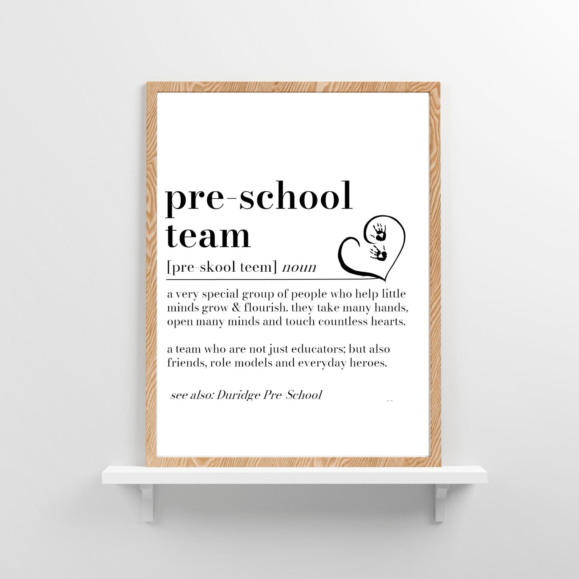 Our Pre-School Team print makes a perfect Gift with optional personalisation. The definition reads -