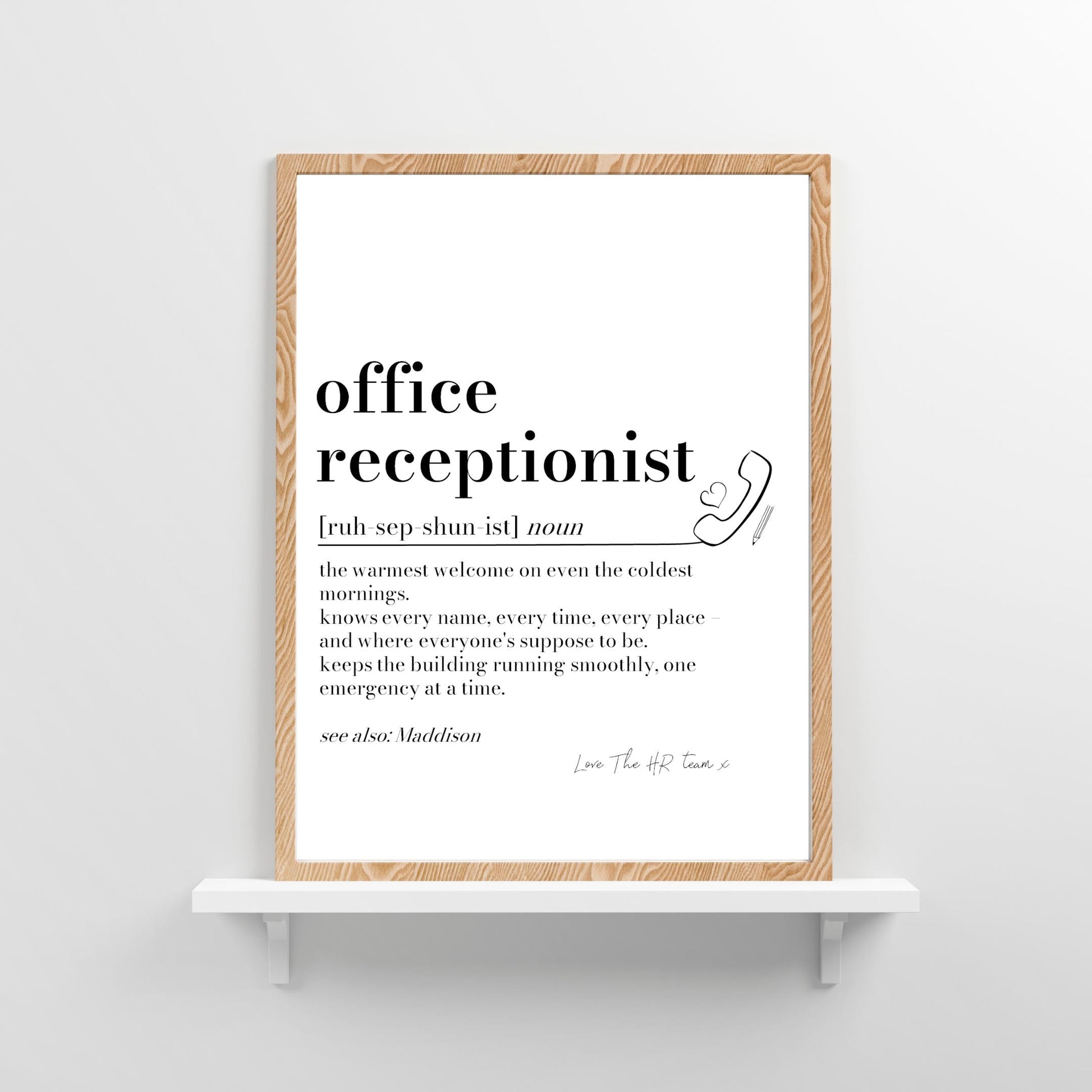 Receptionist Definition Print: Personalised Receptionist Gift, Leaving Present, Office Secret Santa, Reception Desk Decor