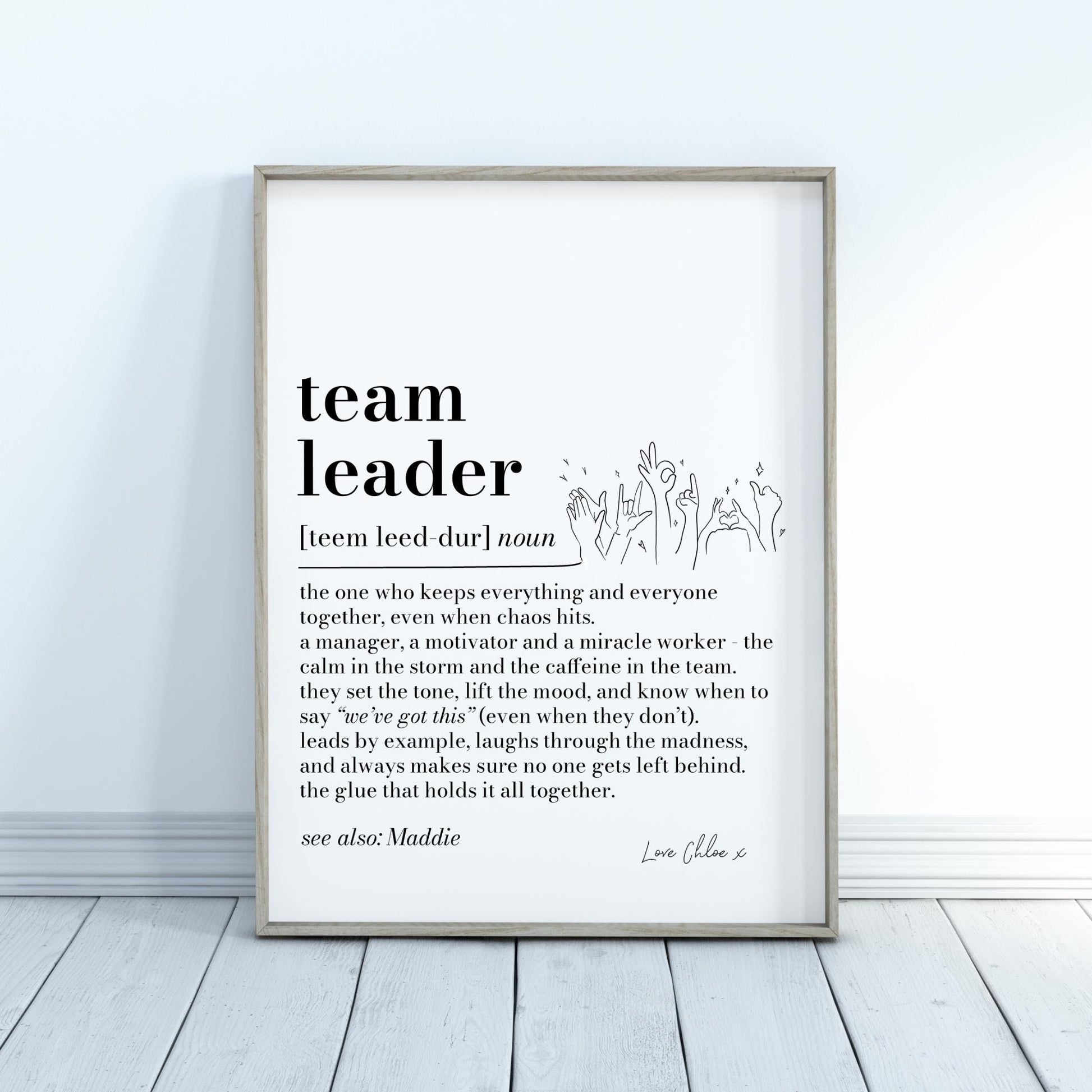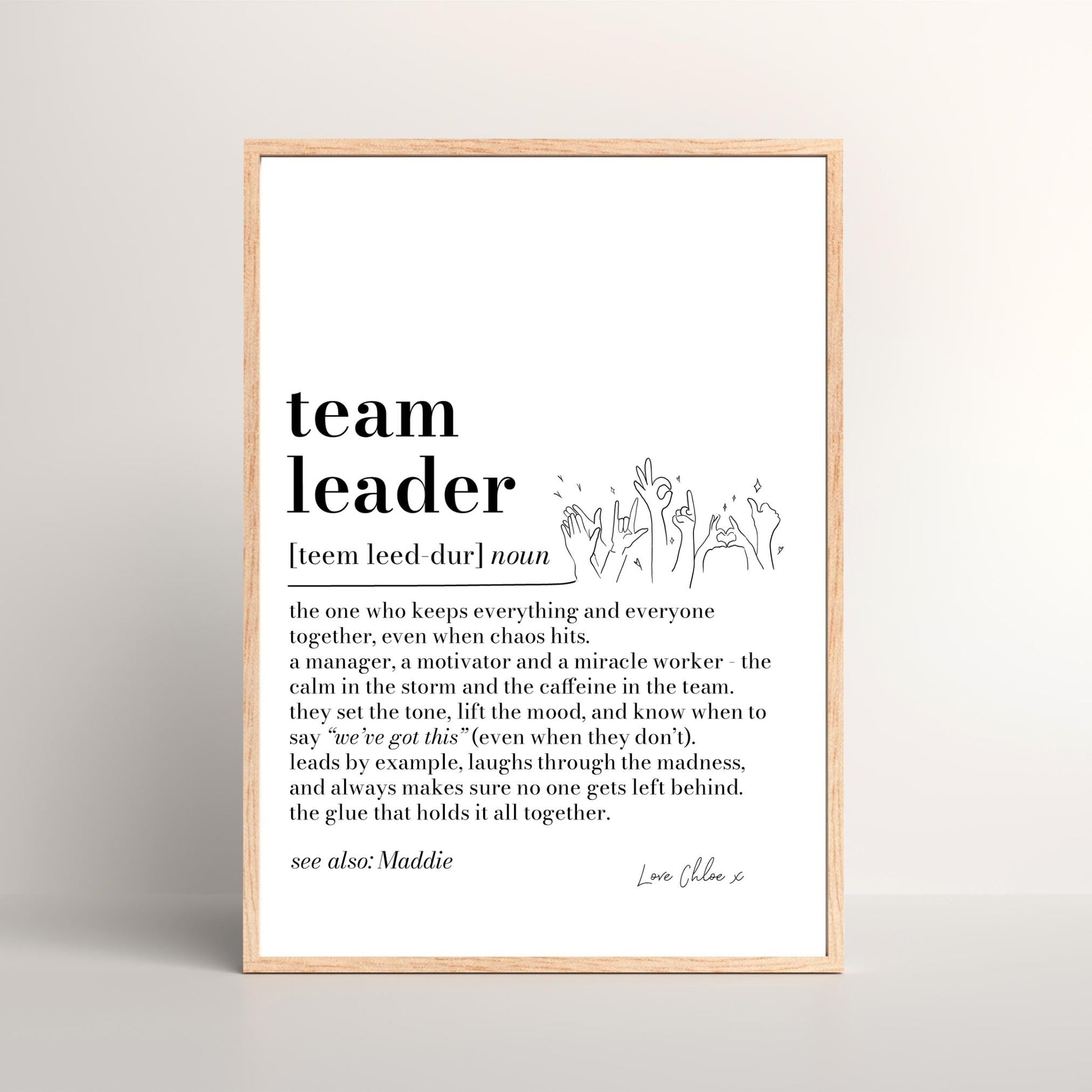 Team Leader Definition Print, Personalised Boss Gift, Office Wall Art, Manager Appreciation Print, Work Gift for Team Leader, Secret Santa